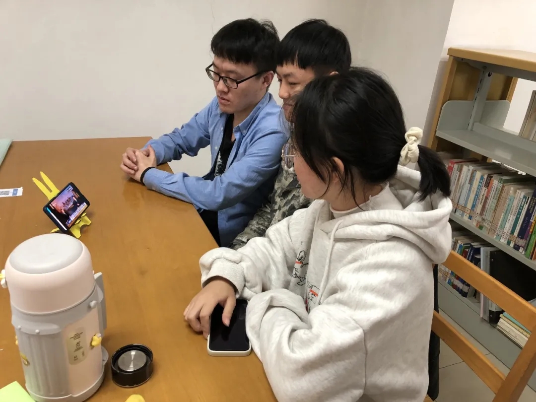 学生们通过手机、电脑等各种方式参与,认真观看纪念辛亥革命110周年大会现场直播。