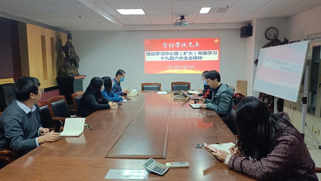 结合学院和各自工作,大家探讨如何把六中全会精神学习好、宣传好、贯彻好、落实好。团结一致为学院各项工作再上新台阶而努力。