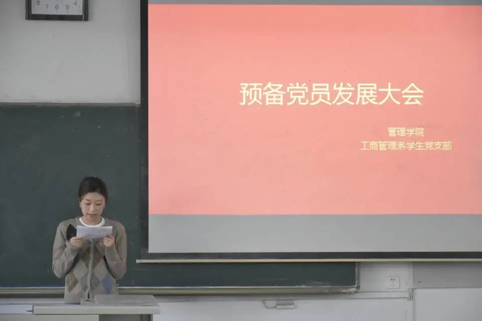工商管理系学生党支部于2021年11月18日中午12点半,在教二楼310召开党支部大会,本次会议由预备党员姜赫哲主持,参会人员为工商管理系学生党支部在校正式党员、预备党员以及发展对象。会议主要围绕“讨论孙铭然、吴昊、杨佳昊等75名同志发展为中共预备党员的决议”展开。