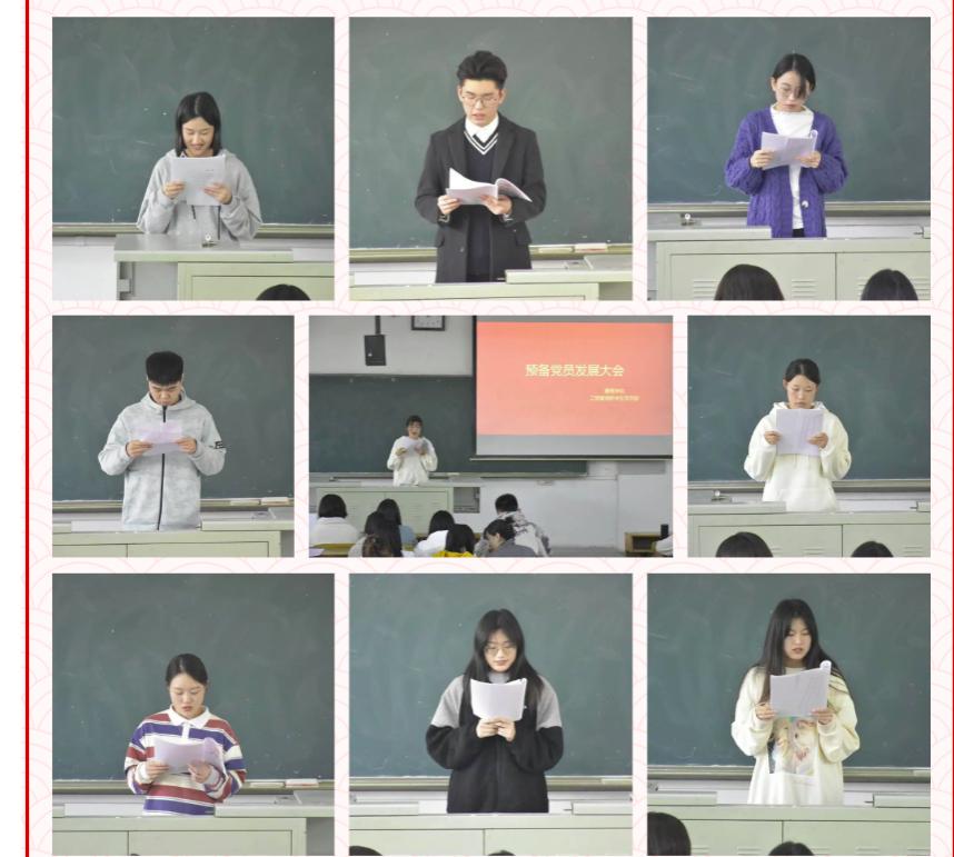 会议第一项,由孙铭然、王若楠、辛岩等75名发展对象进行个人情况汇报并宣读入党志愿书,他们充分表达了自己的强烈入党愿望,并表示在今后的生活中将坚定不移的跟党走,发挥一名党员的带头作用。