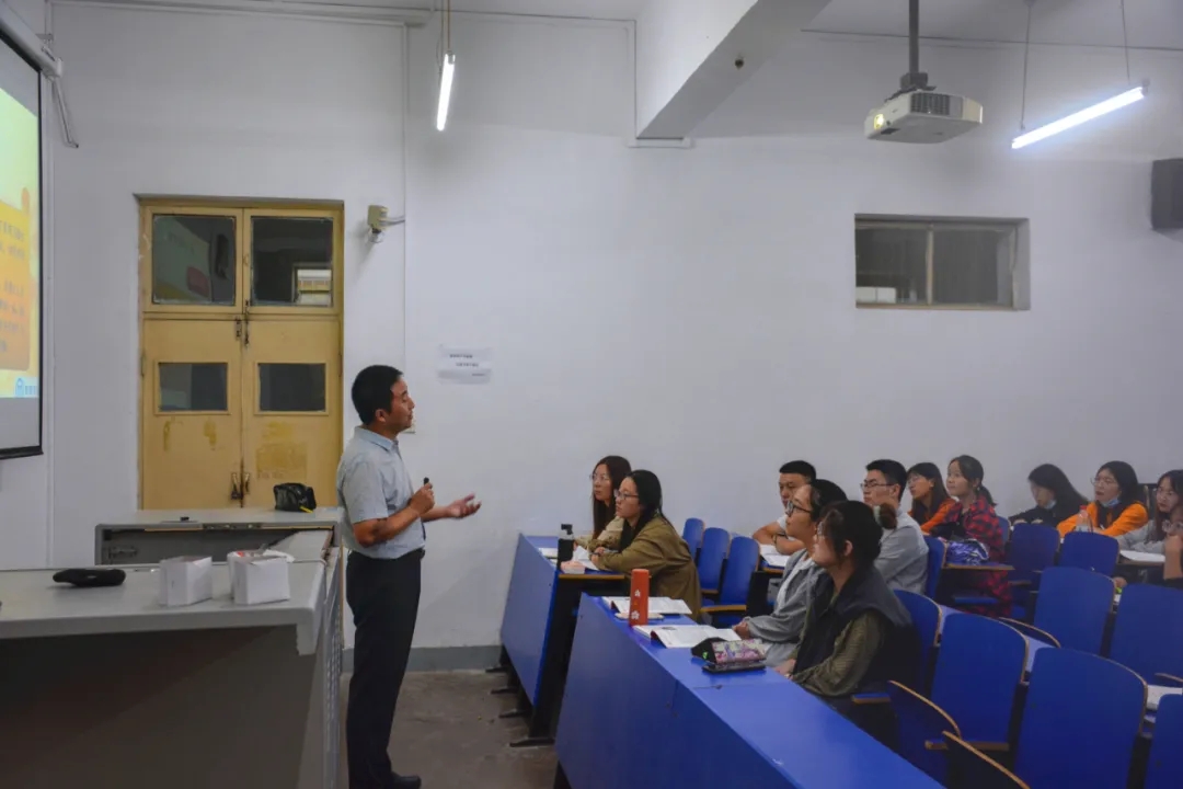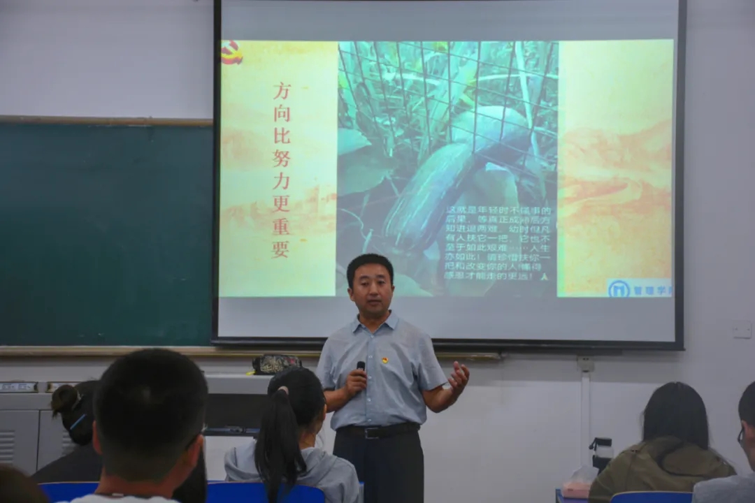 党委书记袁志忠以《肩负使命,砥砺前行》为主题给同学们讲授了第一堂党课。袁书记指出,人生的方向比努力更重要,找准了人生的北极星,才能明确当代大学生的历史使命。同时,他通过分享习近平主席在纪念五四运动100周年大会的讲话,提出时代对当代大学生要树立远大理想、热爱伟大祖国、担当时代责任、勇于砥砺奋斗、练就过硬本领、锤炼品德修为的六点期望,激励大家完善自身能力,心怀祖国,情系群众。