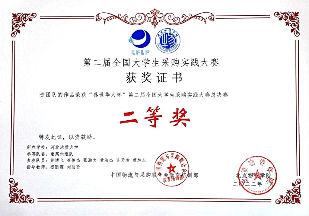采购管理专业宿丽霞、刘丽贤老师指导的“重案六组队”(黄博飞、崔俊杰、张翰文、黄洧杰、许天瑜、曹旭东)和蒋晴云、贺玉德老师指导的“啊对对队” (李梦洁、陈瑾、齐敏、何发亮、王亚龙、张文韬)均获得全国二等奖。比赛考察学生较强的团队合作意识、扎实的专业知识以及方案展示、PPT制作等专业能力,也充分锻炼了学生的实践操作、解决问题的能力,激发了学生的创新意识。