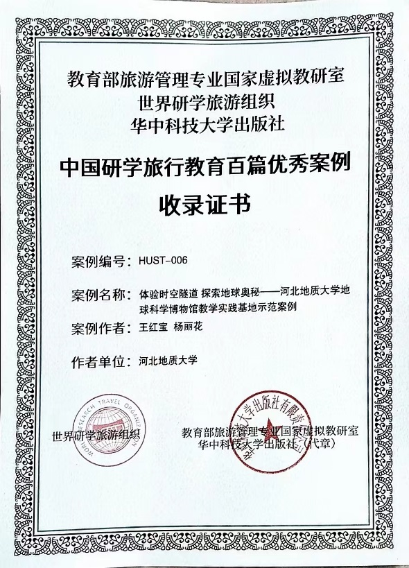 地球科学博物馆教学实践基地示范案例”被世界研学旅游组织、教育部旅游管理专业国家虚拟教研室等组织收录“中国研学旅行教育百篇优秀案例”,被收录的案例将在2024年马来西亚世界研学旅游大会上发布,并通过多种渠道向国际社会广泛传播,加大宣传力度,体现了做爱视频