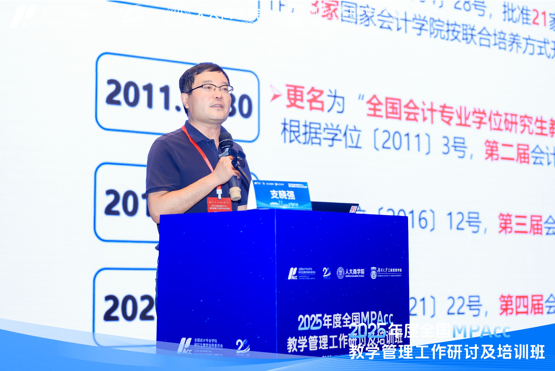 百年办学历程及MPAcc教育发展成果。会计教指委秘书长、中国人民大学党委常委、副校长支晓强教授作主旨报告,总结了MPAcc教育过去二十年取得的成果,并为未来发展指明方向,强调要加快新技术与教育深度融合,创新教学模式,培养适应中国式现代化需求的高层次会计人才。
