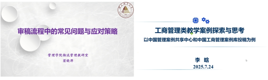 梁晓萍老师以《审稿流程中的常见问题与应对策略》为题,结合自身丰富的学术发表经验,系统梳理了国际期刊投稿过程中常见的审稿问题,并提供了实用的应对策略。她特别以其发表的高水平论文《同城包裹众包配送优化问题》为例,生动详实地分享了在论文投稿过程中如何高效、专业地与审稿人进行沟通,有效提升稿件录用率的宝贵经验,为在场教师提供了极具操作性的指导。李晗老师则围绕《工商管理类教学案例探索与思考》展开分享。她以向“中国管理案例共享中心”和“中国工商管理案例库”投稿的实践经验为基础,从“教学案例是什么”、“为什么撰写教学案例”、“如何撰写教学案例”以及“如何延伸教学案例的价值”四个关键维度,深入剖析了案例的核心要素、写作规范、价值挖掘及投稿要点。李老师的分享理论与实践紧密结合,为教师们开发高质量案例、连接教学与科研提供了清晰的路径和方法。