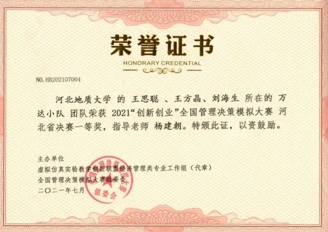 同学的认真准备,最终取得了优异成绩。在河北省赛中,由王思聪、王方晶、刘海生组成的团队获得一等奖;由任炀萍、胡祚、李博渊组成的团队获得二等奖,获得三等奖的有:段志伟、刘思秀、邓雅琪团队;张振琅、崔慧莹、刘若冰团队以及由姜赫哲、杨继桐、谢婧娴组成的团队。