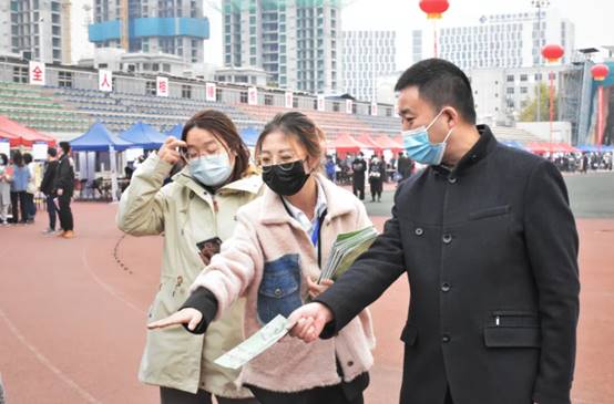 党委书记袁志忠、党委副书记初汉芳、毕业生辅导员周峰老师和张建兰老师亲临招聘会现场对做爱视频