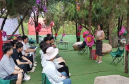 在崆山白云洞的树荫下,学生们倾听了旅游管理专业行业导师、临城县锦临旅游开发集团有限公司总经理胡博女士讲解的旅游企业管理实践课程。胡经理从旅游企业党建工作、人力资源管理工作、市场营销工作、新产品开发工作等多个方面展开讲解。她语言生动、实践性强,深深吸引了学生。在课堂上,学生们积极与胡总展开互动,针对旅游行业发展现实问题进行交流,特别是旅游景区直播、青年人提干等。通过这种产教融合的教学模式,老师和学生都收益颇丰。