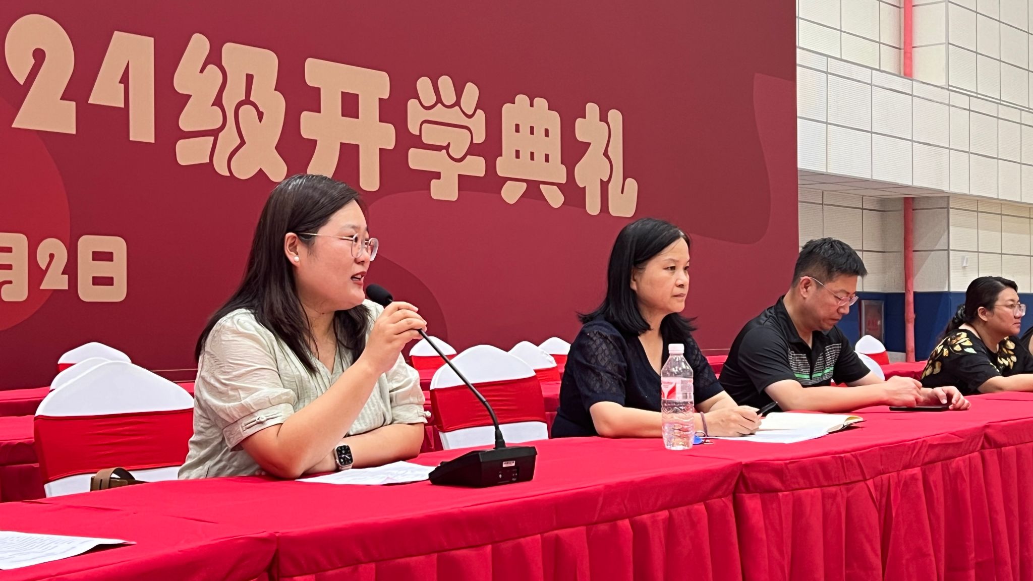 辅导员徐宁老师、王燕老师、唐菲老师和郝伟韦老师依次表示了对新生诚挚热烈的欢迎。