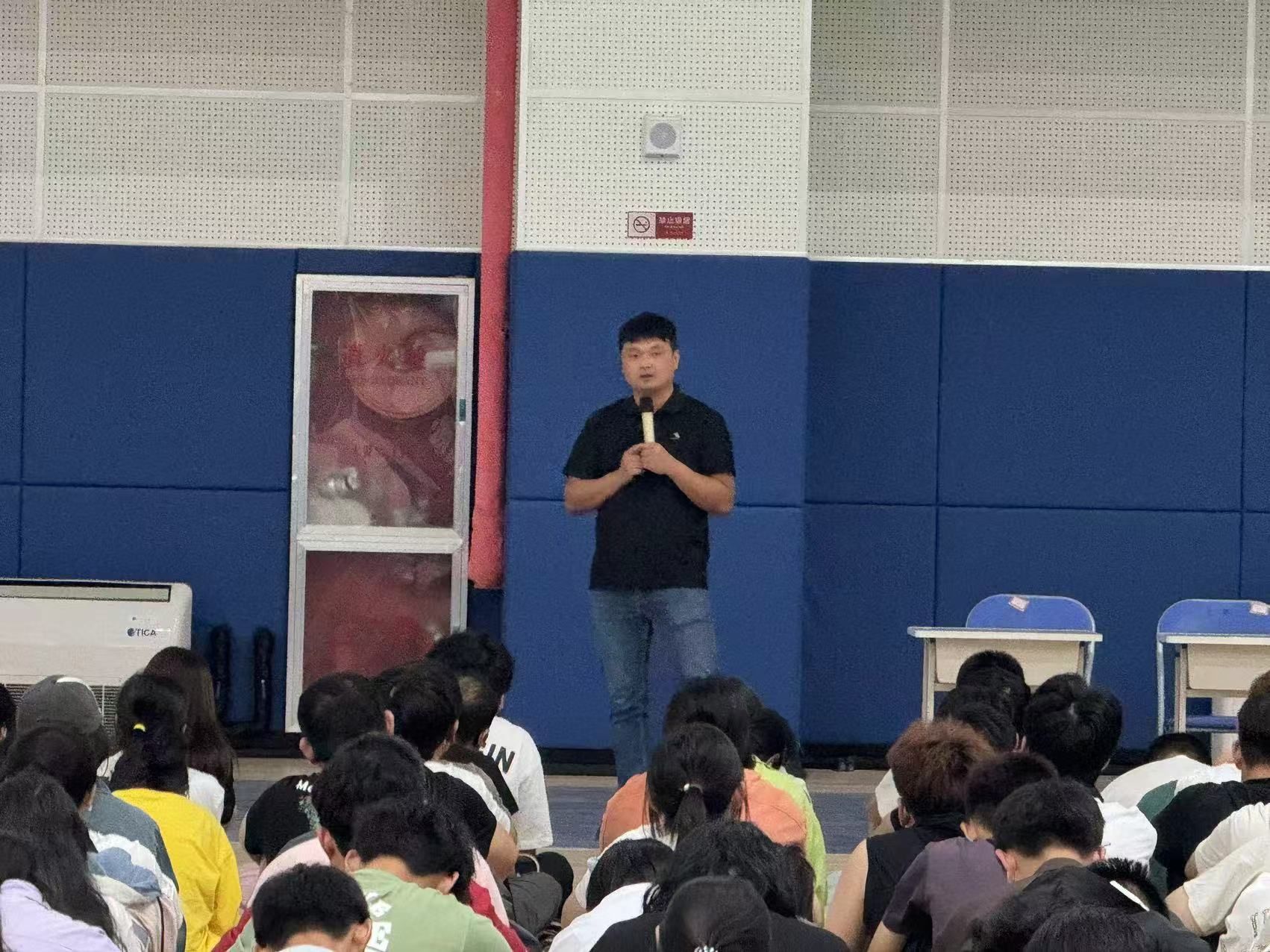 法政学院马绍峰老师为新生进行学业生涯规划分享,他深刻阐述了“凡事预则立,不预则废”的核心理念,着重强调了学业生涯规划对于每一位新生的重要性。马老师向同学们提出了积极投身于体育锻炼、学好专业课程、考取各类有用证书三点宝贵建议。并告诫新生要珍惜大学时光,切勿眼高手低。